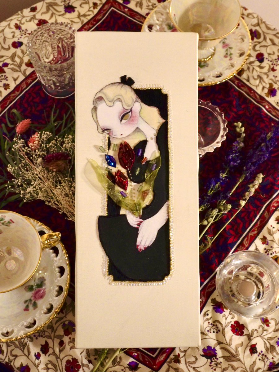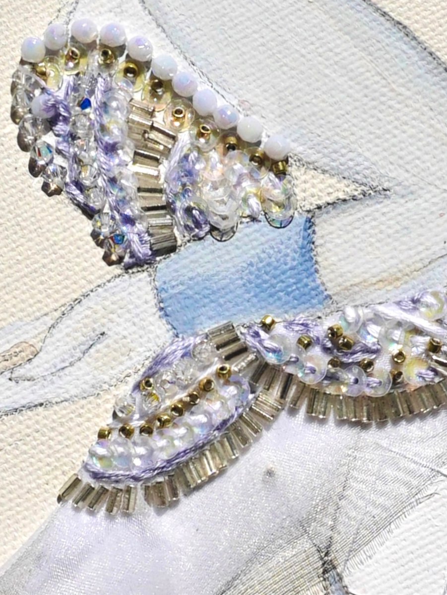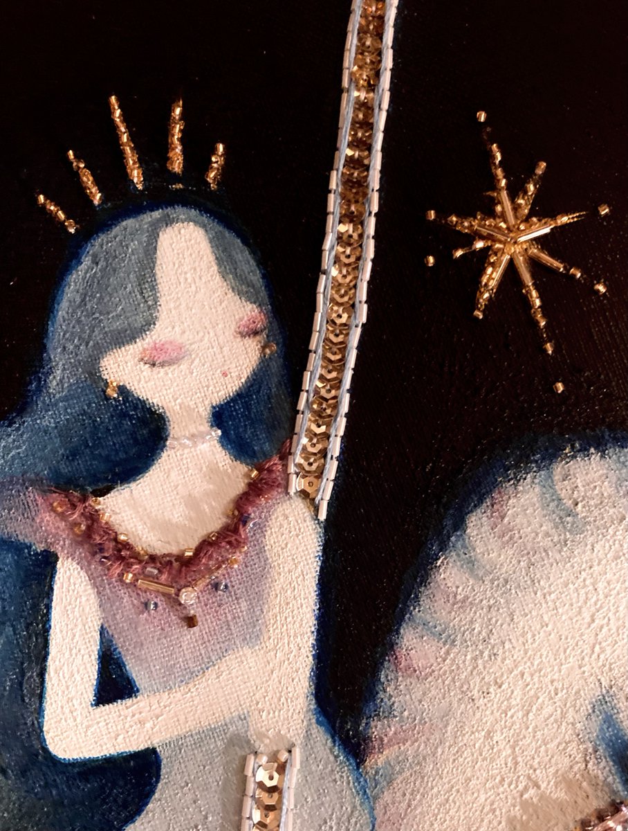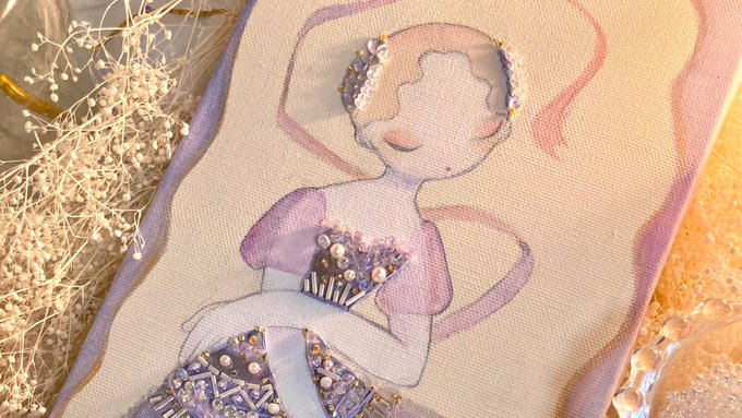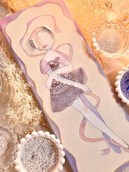 『まだ夢から醒めないで』 keep on dreaming 🪄💫 アクリル、水彩、ビーズ