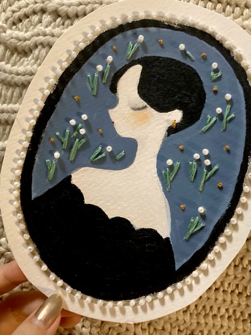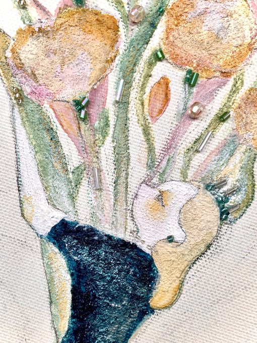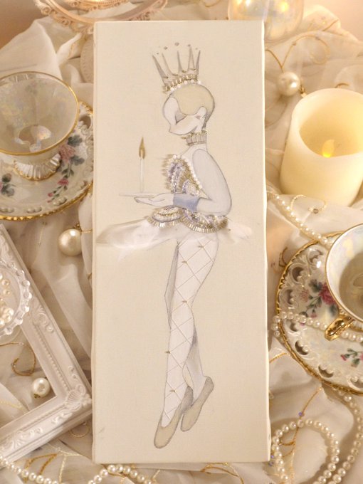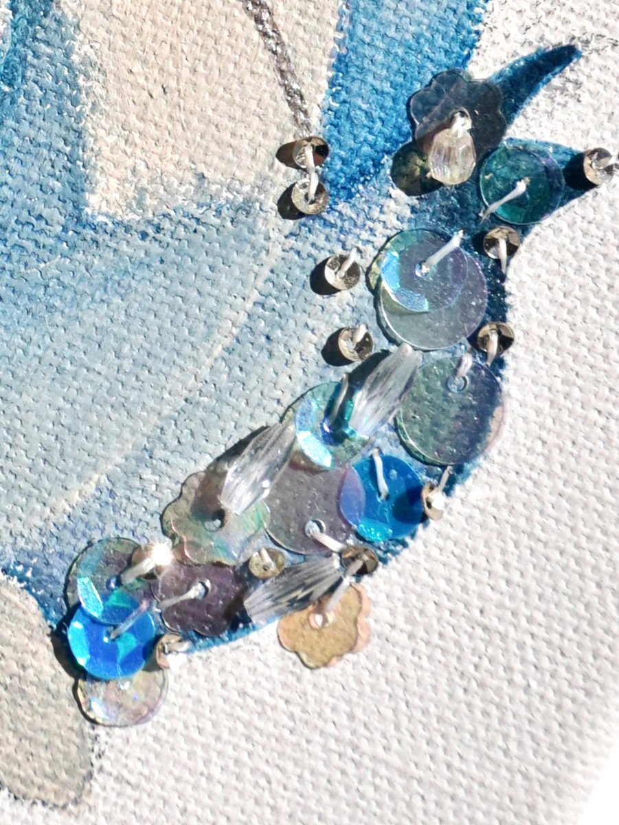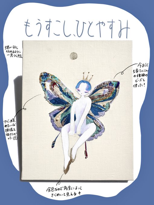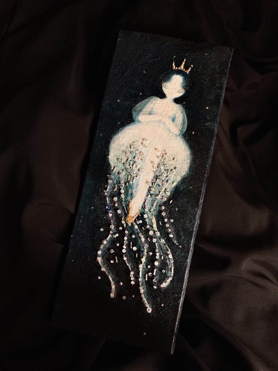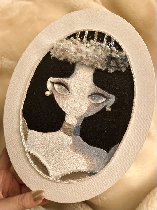 『まだ夢から醒めないで』 keep on dreaming 🪄💫 アクリル、水彩、ビーズ