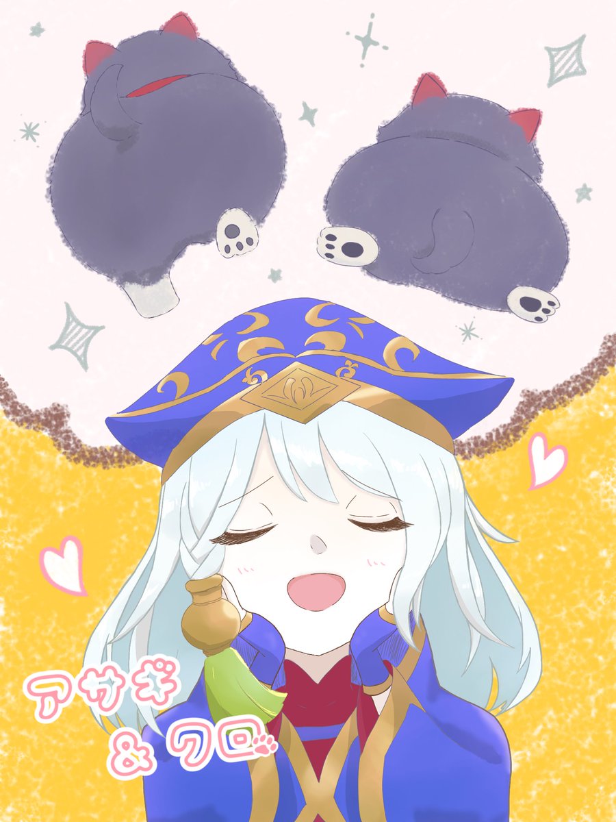 9月をアサギ先生&クロで担当させていただきました!🙌✨ 季節感が無くて申し訳ないです…笑 「かわいいは正義」がテーマです。嘘です後付けです😊 うっとりしてるアサギ先生を表現するために、ポップでほんわかした塗りとクロのふわふわ感を大切にしました!🎨🫶 #黒ウィズFanArt_カレンダー企画