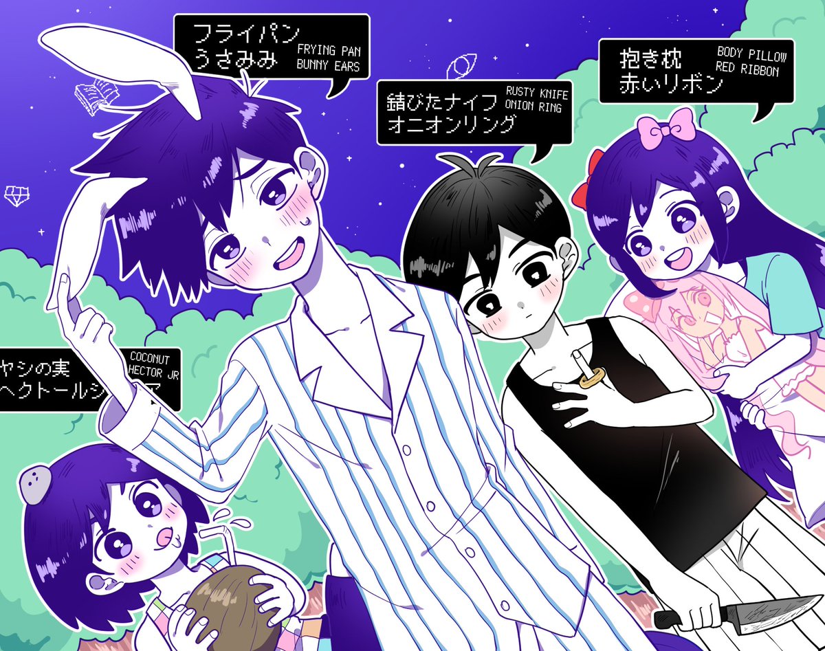 67 344 ヒロくんにずっとうさぎの耳をつけていたのをあと1日の時に気づいた その時の装飾品のイラスト #OMORI #OMORIFANART 22/02/11 04:06