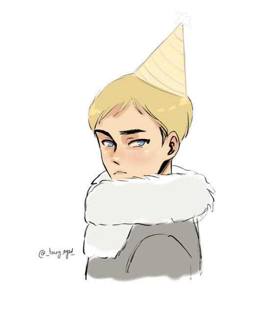 bday boy🥺🥺❤️ (Levi drew hearts on his cheeks and nose) #ErwinSmith #エルヴィン・スミス生誕祭2022 #eruri