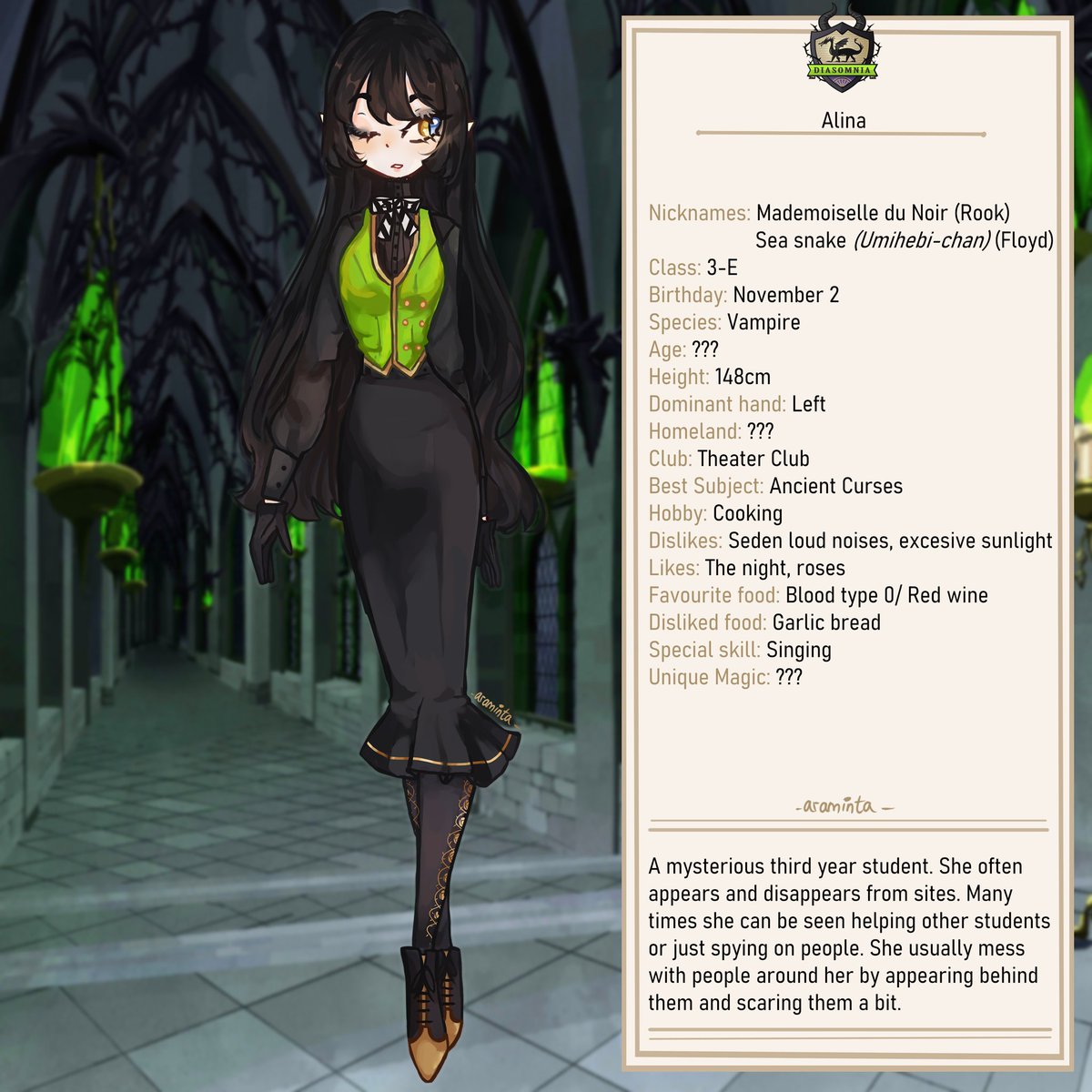 And here's my other twst oc Alina with the Diasomnia halloween costume! #twstプラス #twst_OC #twistedwonderland #twst #twstファンアート