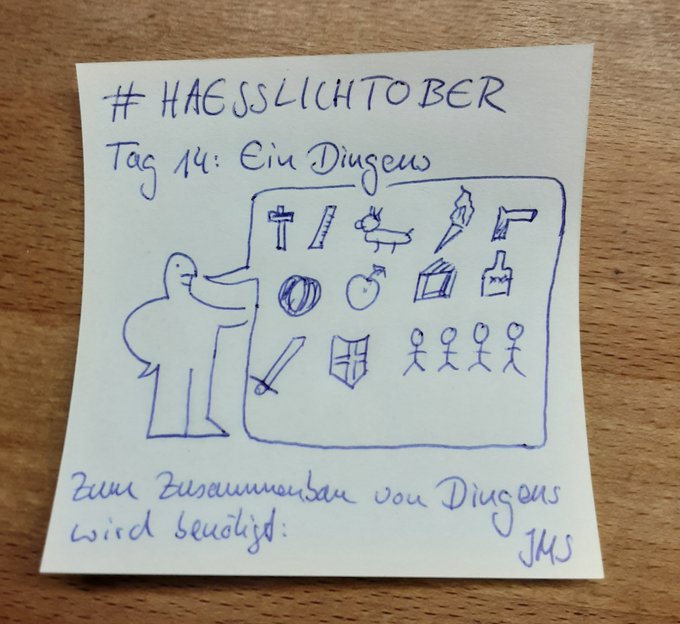 #haesslichtober. Tag 14: Ein Dingens. Mein Dingens kam heute per Post. Ich werde es zusammenbauen, sobald ich mein Schwert aus dem Keller geholt habe. #inktober #drawing #uglytober