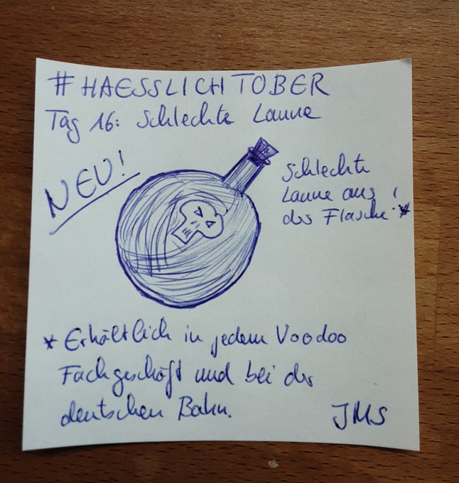 #haesslichtober. Tag 16: Schlechte Laune. Jetzt neu! Schlechte Laune in der Flasche. Ideal zum Lagern und später genießen. So haben Sie mehr von Ihrer schlechten Laune. #inktober #drawing #uglytober