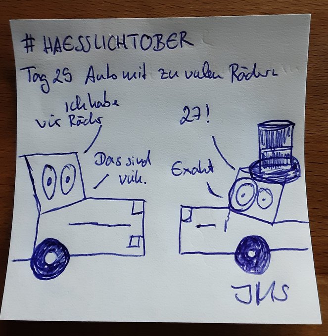 #haesslichtober. Tag 29: Ein Auto mit zu viele Rädern. Hui, heute wird es politisch und philosophisch. Es stellt sich die Frage, wann hat man genug? Gibt es eine Obergrenze für Reichtum und Besitz? #inktober #drawing #uglytober