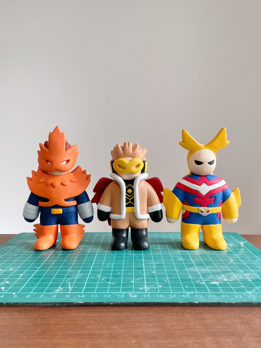 100均で材料そろえてつくった ・エンデヴァー ・オールマイト ・ホークス ←new #ヒロアカ #ホークス #石粉粘土