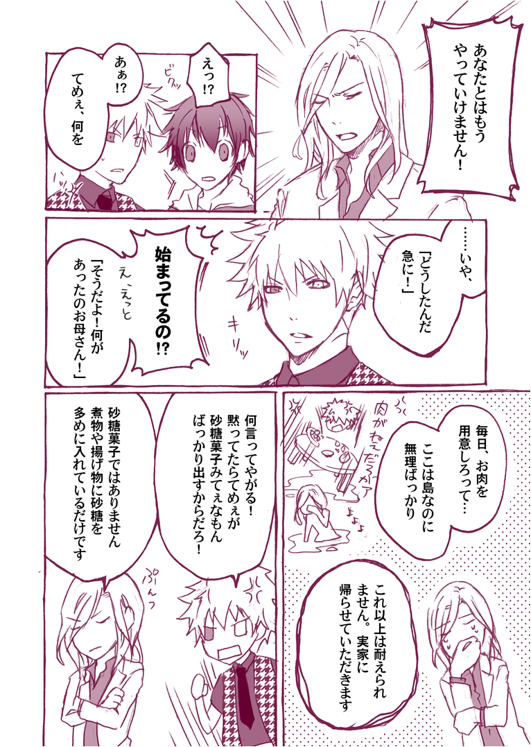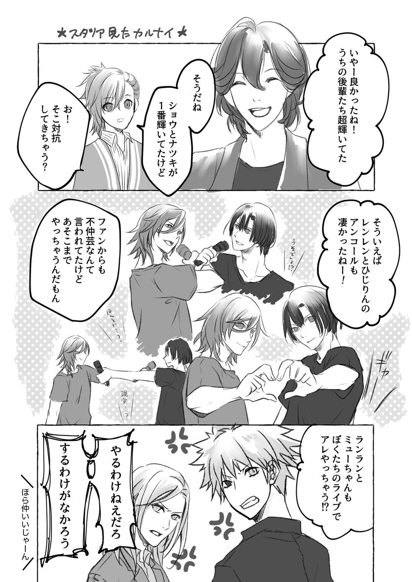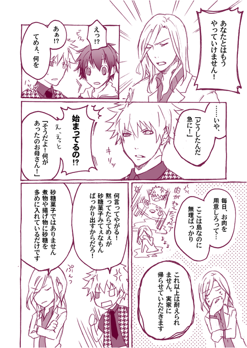 島が入島禁止になるまで かの地では「アイドル☆アイランド」という番組があり、即興で色々させられていました。2015年11月25日放送された回の即興劇「島に住む家族」セリフ、流れはそのままです。 #蘭丸お父さんとカミュお母さんの結婚記念日2016