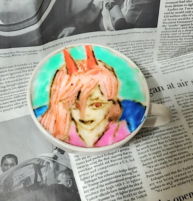 久しぶりのラテアートはハーレイ・クイン描いてみた☕🌀 背景色黒のが良かったかな… ジョーカーの髪色にしてみたんだけども… 今更ながらハーレイ・クイン可愛いなぁ💕 #t_latte #HarleyQuinn #SuicideSquad #ハーレイ・クイン #スーサイドスクワッド
