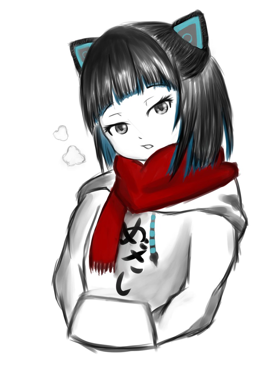 みずしーって冬はどういう服着てるんだろうって考えて、とりあえずマフラーだけ巻かせた絵 #ぶくぶくの民絵
