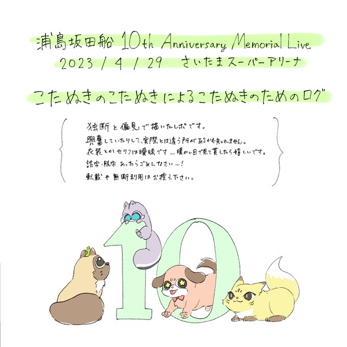 1 5 今更ですがメモリアルライブのレポ描きました!!ほぼうらたさんしか見てなかったこたぬきによるレポですᐢ⓿ᴥ⓿ᐢ 答え合わせ(円盤)が楽しみ🚢🌊 ツリーに続きます! #うらたぬ王国の美術館 23/06/13 01:28