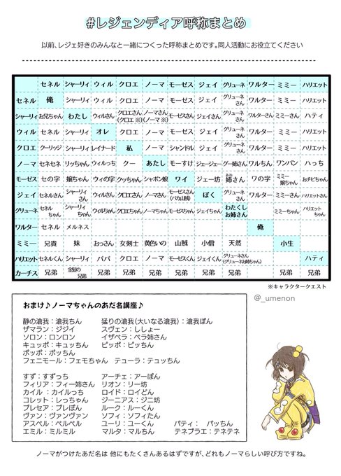 あのあのあのめっちゃ拡散されたあとなんですが、そういえば何年後かに見やすくしたやつあったなあと思ったのでお納めください…… (おまけにノーマちゃんのあだ名表付き)