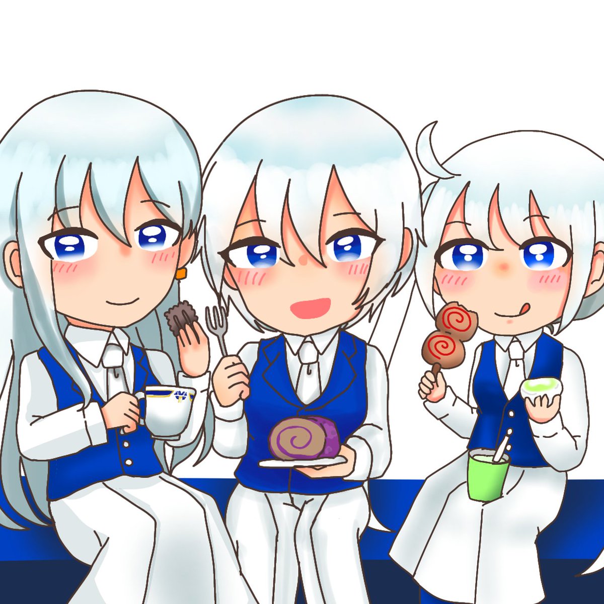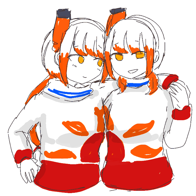 6 11 #船舶擬人化版深夜の真剣お絵描き60分一本勝負 @ofune_1draw お題「ツインテール」からシルバーな二人組を!(画像一部修正) 23/02/04 23:07