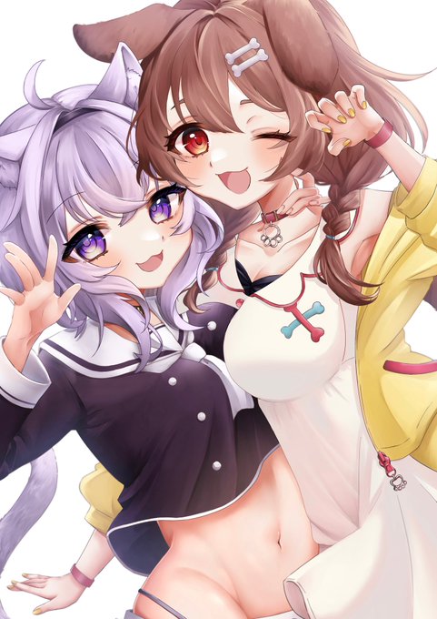おかころわんにゃん!🐾🤍 #絵かゆ #できたてころね #illustration