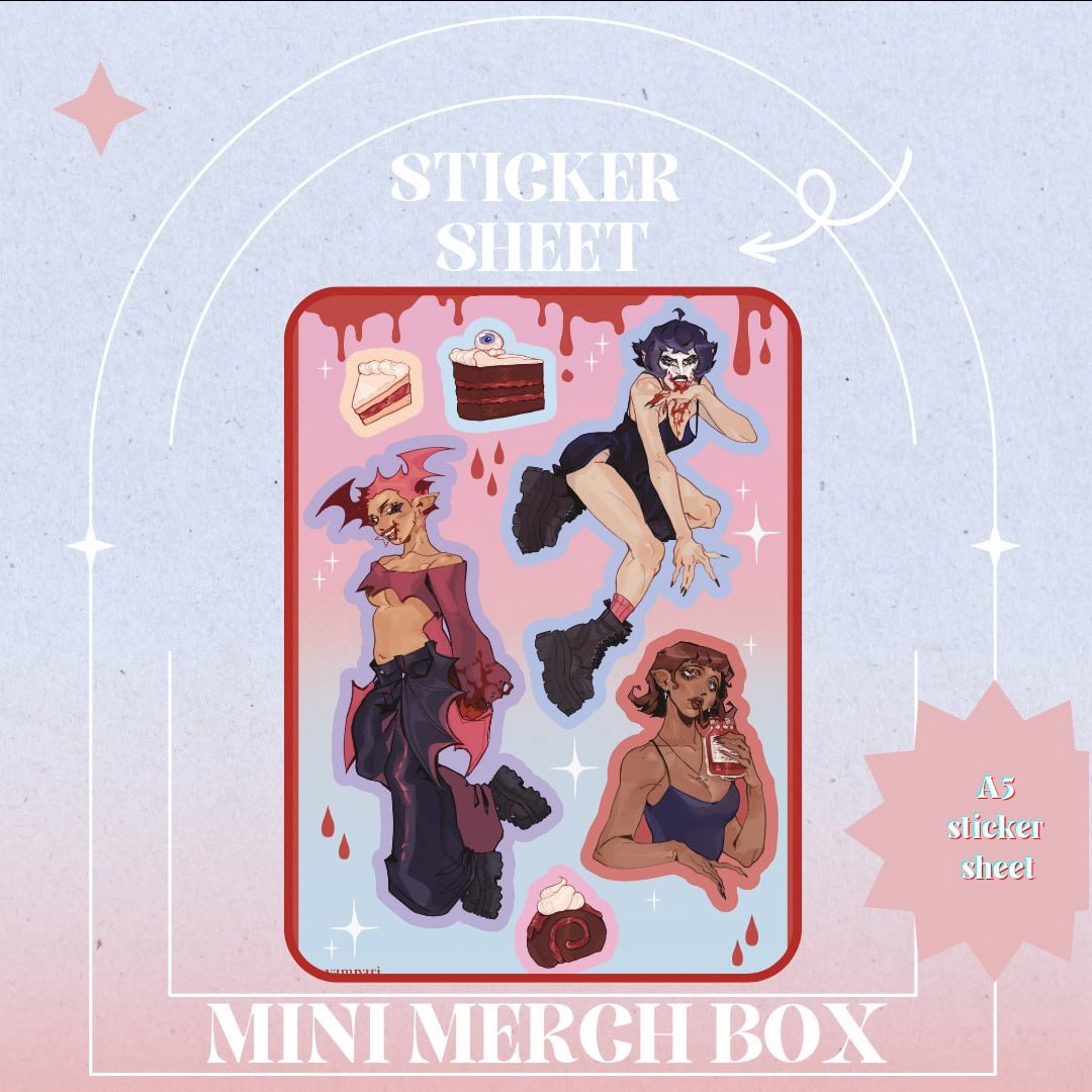 Remember all that vampire themed merch I was working on?? Well here it is, in a cute mini merch box!!! 📎 sleepywyrm.bigcartel.com