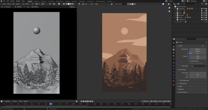 Blenderでドット絵作ってるけど、結構いい感じ~ #b3d #pixelart #ドット絵