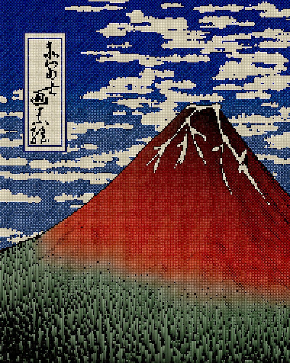 49 453 デジタル浮世絵 葛飾北斎の凱風快晴をドット絵で作りました 3DCGです🗻 #houdini #pixelart #ドット絵 22/04/03 18:13