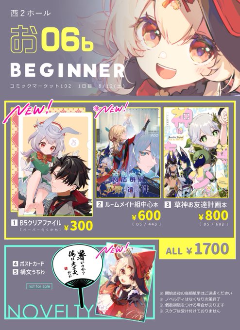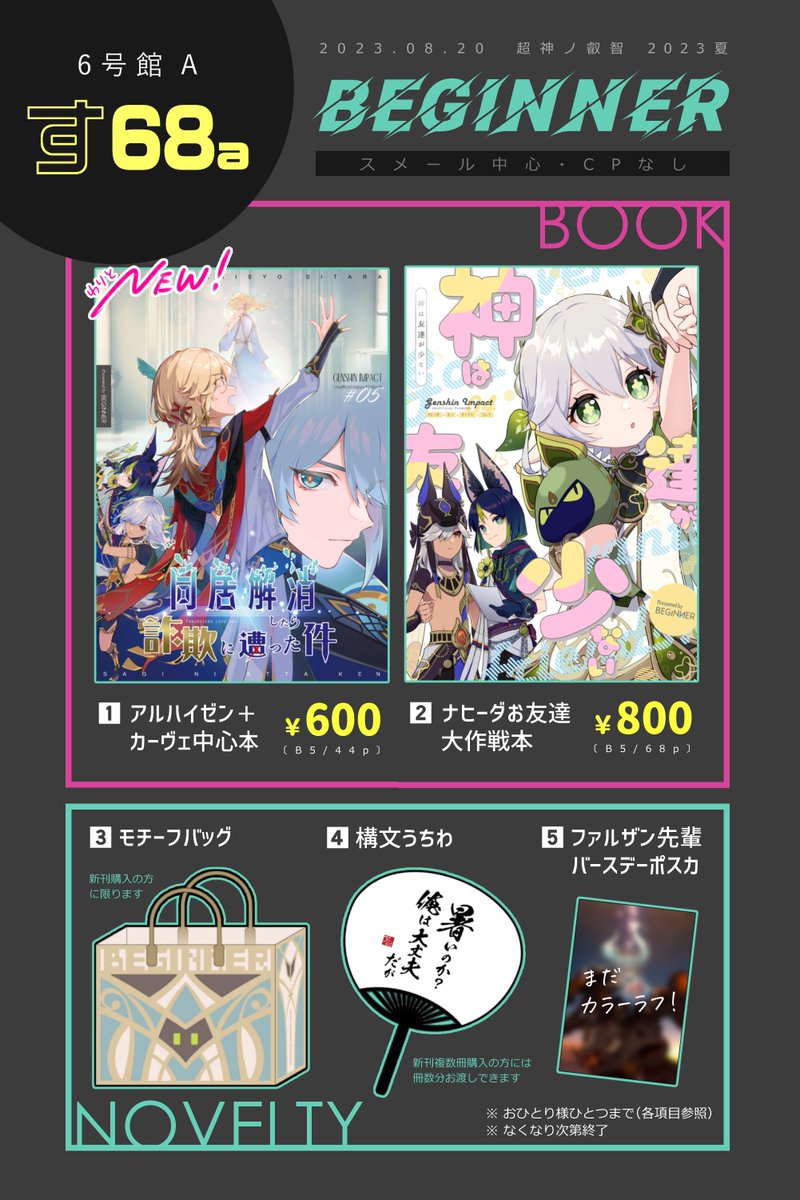 8/20超神ノ叡智(夏インテ)のお品書きです☀️ 既刊はこれで在庫ラスト!📚 6A す68a【BEGINNER】です よろしくお願いします~! pixiv.net/artworks/11085…