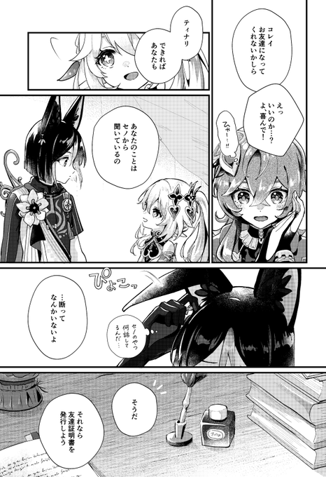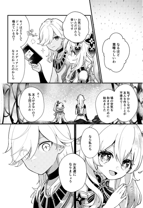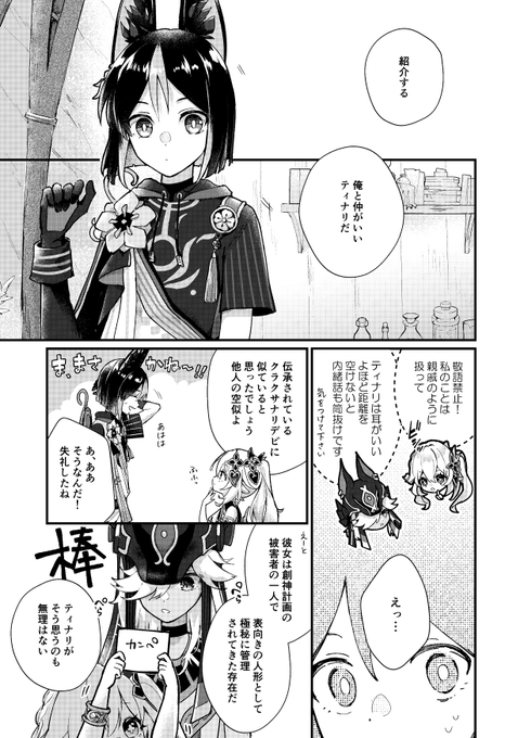 【5.3 超神ノ叡智2023】新刊サンプル①(1/4) 神様が身分を偽ってお友達を作る話。 ナヒーダ・セノ・ティナリ・コレイの4人中心本です。 pixiv.net/artworks/10742…