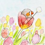 4月に描いたコキンちゃんが旅立ちます✨minne水彩原画販売minne.com/@waffu 封筒の落書きが可愛く描けたので、いってらっしゃいツイート✉️ おうちが決まって良かったね!₍₍(´ ▿` ∗)⁾⁾喜んでもらえるといいな