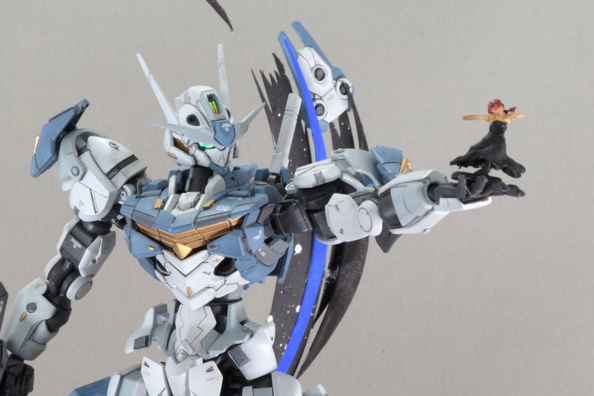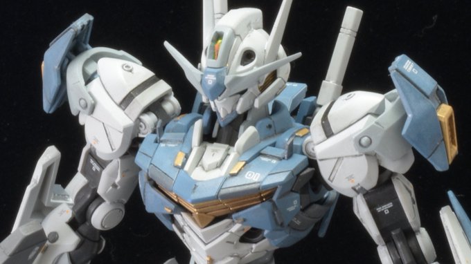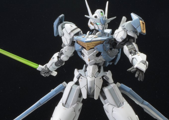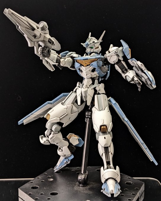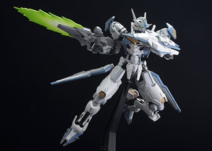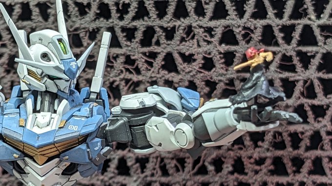 完成~。 水星の魔女2期エンディングイメージのヴィネットできた。なんか墨エフェクトがちょうど、ひと繋がりに見える角度があって超良い感じになった。 #ガンプラの画像を貼るとRTされると聞いて #水星の魔女