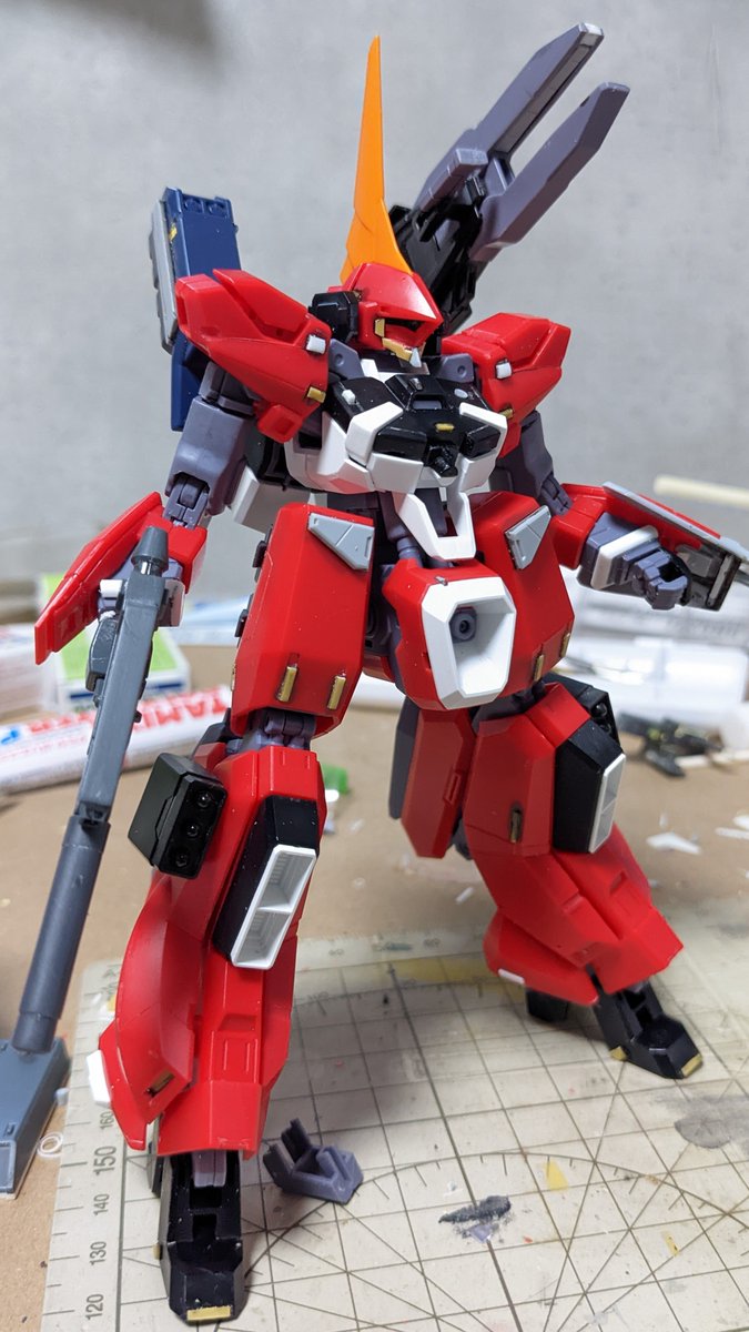 ウェザリングしたパーツを合体し、リックディアスもといポルタディアスの完成が概ね見えてきた。 見えてきたが…うーん…全体的に白く粉吹いてる感がなぁ…どうリカバリーしたものか。 #ガンプラの画像貼るとRTされると聞いて