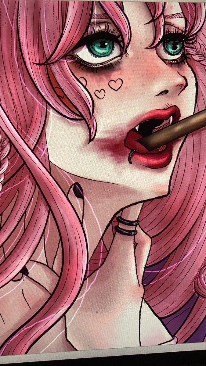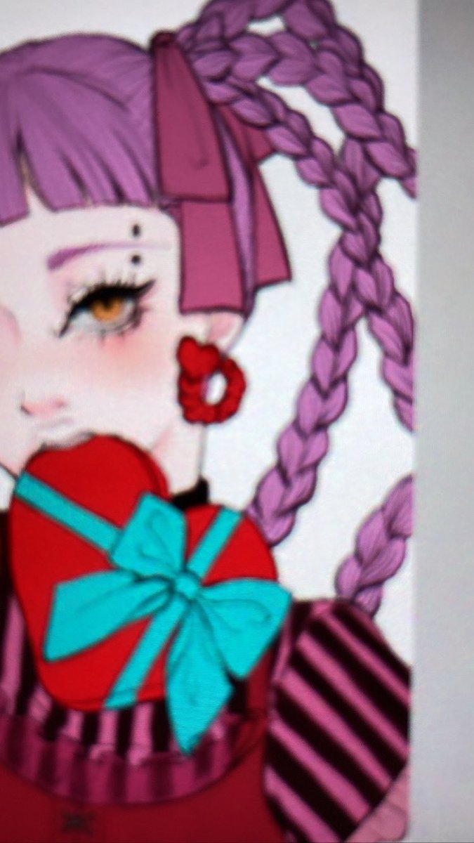 バレンタインイラスト描いてるところ🖤 配色が苦手でいつも悩む 可愛い組み合わせ思いつくようになりたいなぁと思いながら写真とかお出かけしてます。笑 #イラスト好きな人とつながりたい #デジタルイラスト