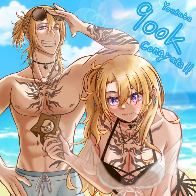 13 66 🦁💰900K Congratulations!!!💛🎉 本來是800K的賀圖打的草稿 (所以才會是夏天海邊風 結果忙得一直沒時間畫 終於是有在900K時畫完了😭 #drawluca 22/11/20 22:15