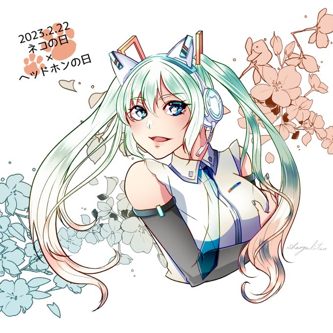 2 3 ネコの日×ヘッドホンの日 #VOCALOID #初音ミク #ネコの日 #猫の日 #ヘッドホン pixiv.net/artworks/10561… 23/02/22 18:21