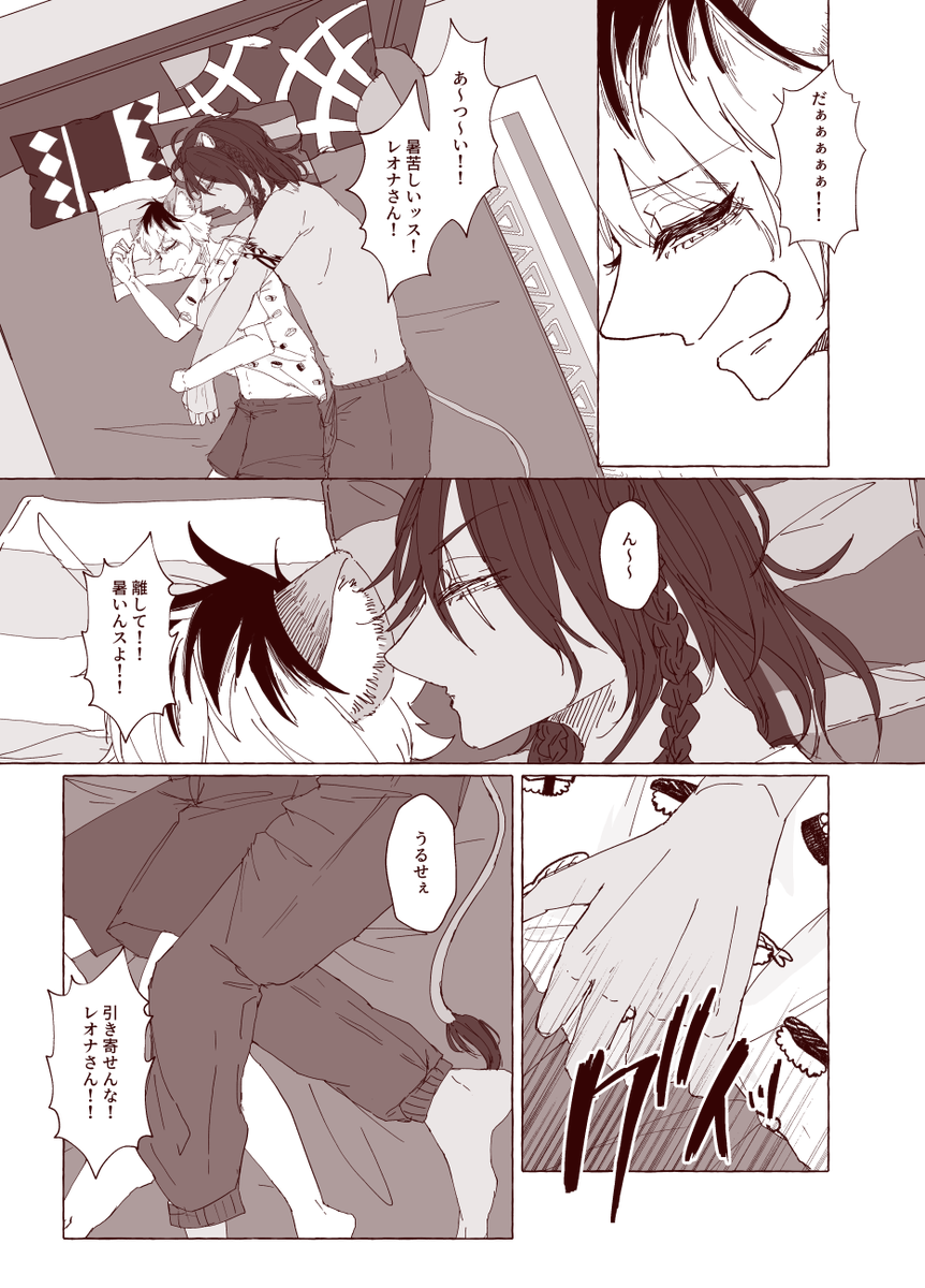 7 54 暑いけど離しがたいぬくもり/レオラギ 夏でもくっついて寝ててくれ~ #twst_BL 21/08/15 19:04