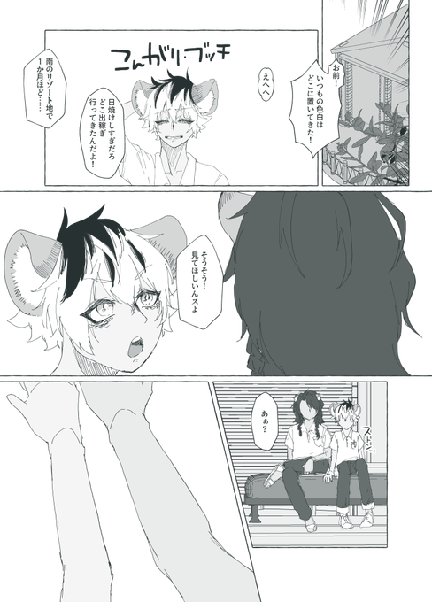 お題「日焼け跡」 大遅刻なうえに、ワンドロ+0.5ぐらいしてます ※夏服捏造、全体的に雑 ※ラギくんが日焼けしてるおかげで誰おま状態 #レオラギ1DW @leoruggie_one