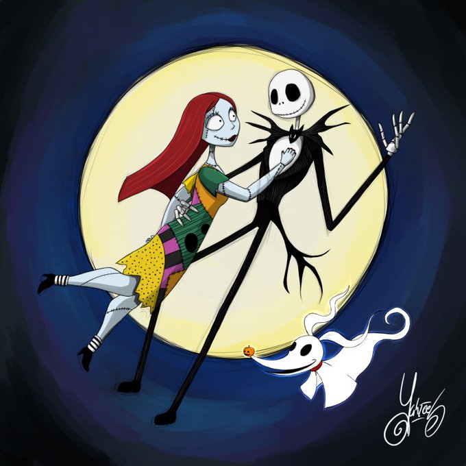 For day 17 of #inktober I made Jack, Sally and Zero from The Nightmare Before Christmas. #digitalart #fanart #CLIPSTUDIOPAINT #pencildrawing #watercolor #TheNightmareBeforeChristmas
