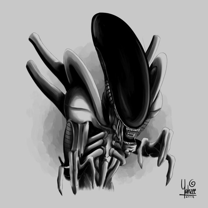 For day 29 of #inktober I made an Alien. This one is based off an old doodle I made a couple years ago. #digitalart #fanart #clipstudiopaint #watercolor #Alien