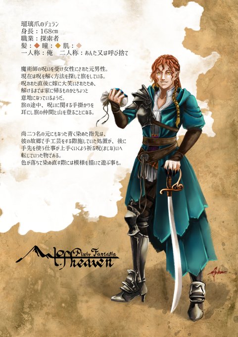 【PFMOH】瑠璃爪のデュラン【探索者】 #pixivファンタジアMOH #PFMOH人物名鑑 #PFMOH【探索者】 #オリジナル #ファンタジー pixiv.net/artworks/87912…