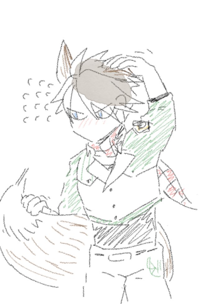 20 61 なんらかの世界線で急にひでおにモフモフの耳しっぽが生えたら、困惑しつつもひとまずモフモフの感触を楽しんでかつ己のなでなでスキルの高さゆえに気持ちよくなってわりとずっとモフモフなでなでし続けてしまうと良い…という意味のらくがき 23/05/18 22:26