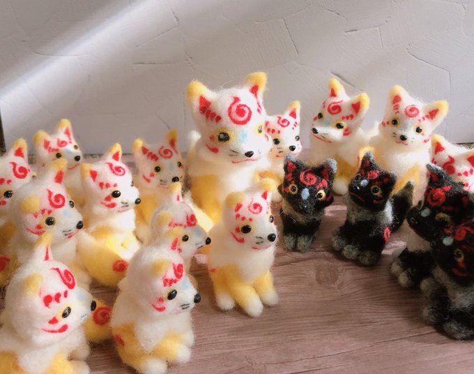 23 88 だんだんと増えてきたこんちゃん達🦊 2/23は【西1 キ 02a】にて、お迎え頂ける本丸の主様をお待ちしております! #とうらぶ手芸部 #羊毛フェルト #こんのすけ 20/02/15 14:26