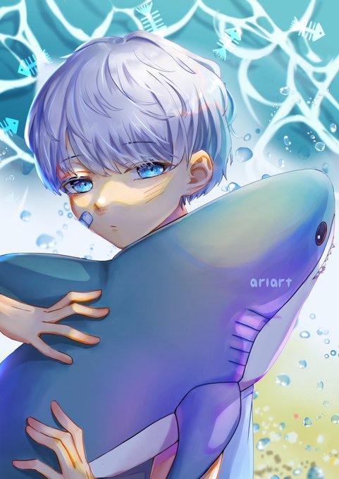 2 7 サメと少年 #イラスト #お絵描き #創作 #創作男子 #IKEAのサメ 22/01/16 03:20