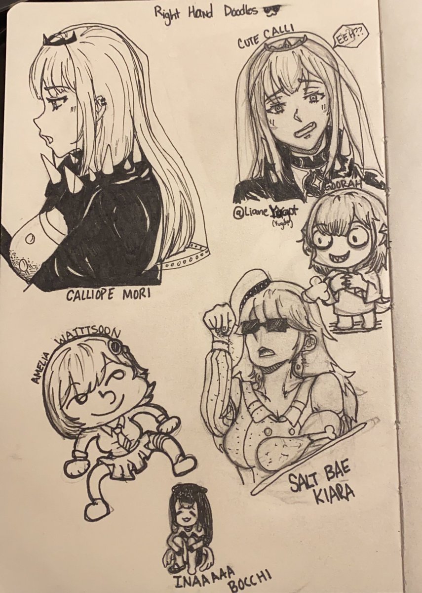 Thought it would be cute to see baby/toddler Calli interacting with Kiara. Only a rough sketch tho, I’ll get better at colouring and shading soon (*´∀`*) #TAKAMORI #callilust #ArtsOfAshes
