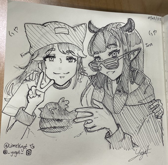 Was listening to some HoloLive-EN streams while working and couldn't help doodling these two. 💀🐔#TAKAMORI #ArtsOfAshes