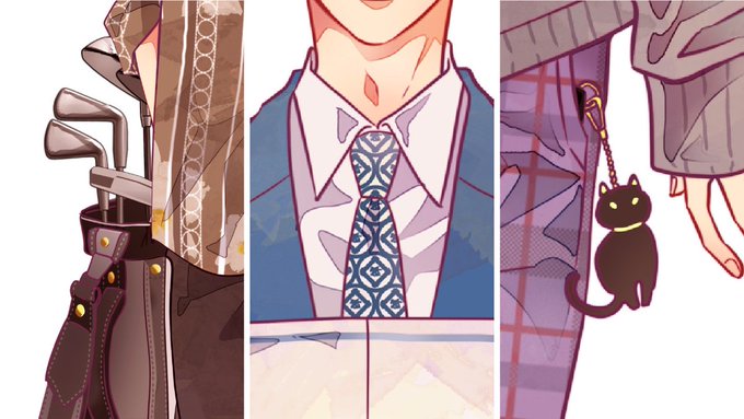 3 13 さらに、本一郎さんのネクタイは松坂屋の商標・伊藤丸。北二郎くんは国内トップクラスのゴルフ用品売場を持つ北館のイメージでゴルフバッグ。南三郎くんには南館2階KiKiYOCOCHOのイメージアニマル・黒猫のストラップを。擬人化ならではの醍醐味を楽しみながら描かせていただきました! #松茶会 23/02/04 15:18