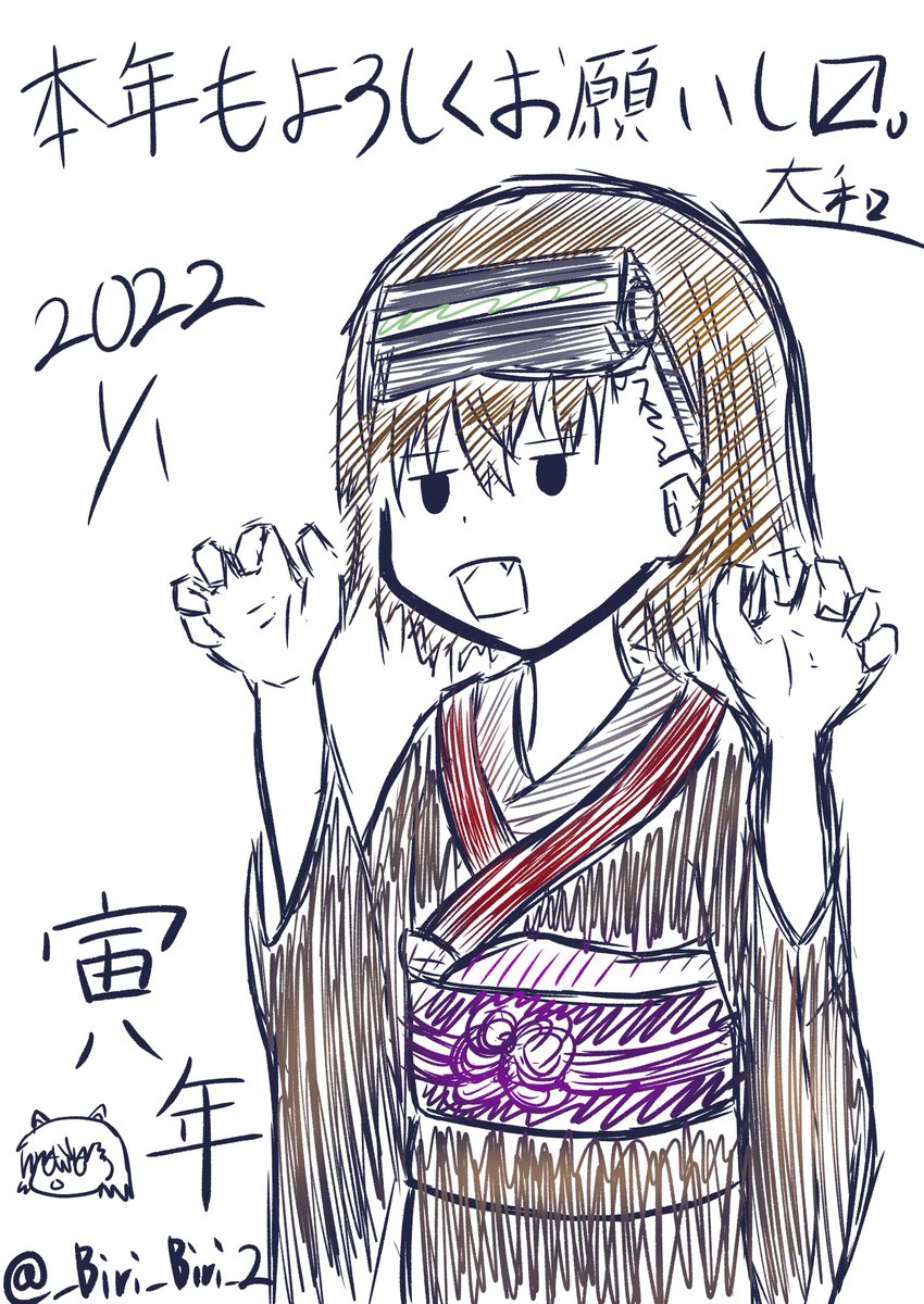 9 21 描き初めです。 今年もよい1年になりますように! 尚、本人は風邪ひいて瀕死なのでしばらく消えます。m(_ _)m 体調戻ったらリメイクします、、多分。 22/01/01 13:41