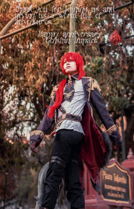 Esperó poder participar en el concurso de cosplay. Fuimos con Amber en busca de un nuevo enemigo(?). She hoped she could participate in the cosplay contest. We went with Amber in search of a new enemy (?). ID: 615172209 #Diluc #Cosplay #GenshinImpact #Genshincosplay