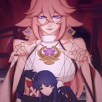 《 Genshin Impact 》 "I would have simply disposed of it without her knowing. " — #原神 #yaemiko #scaramouche #kunikuzushi #genshinimpact #genshinimpactfanart