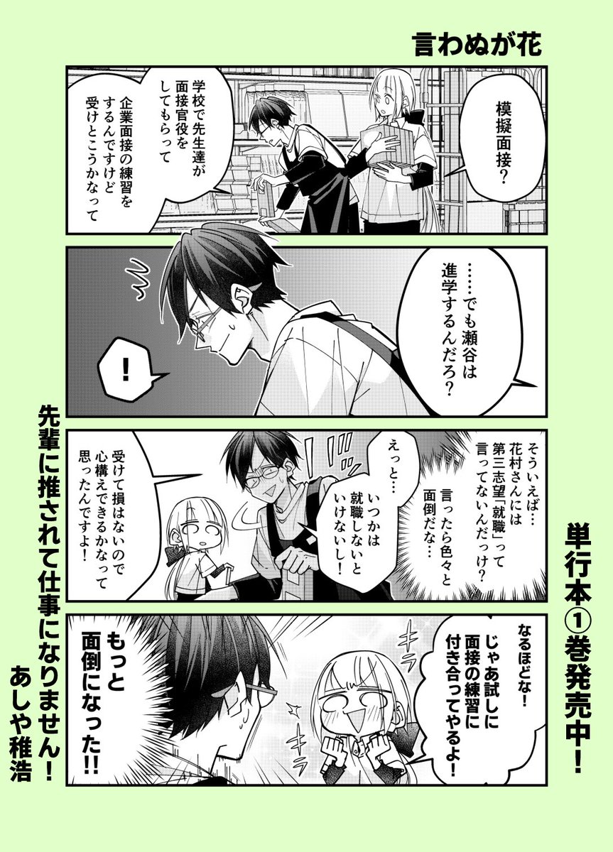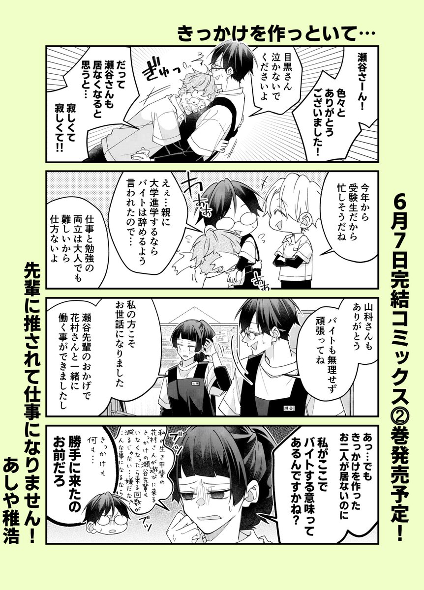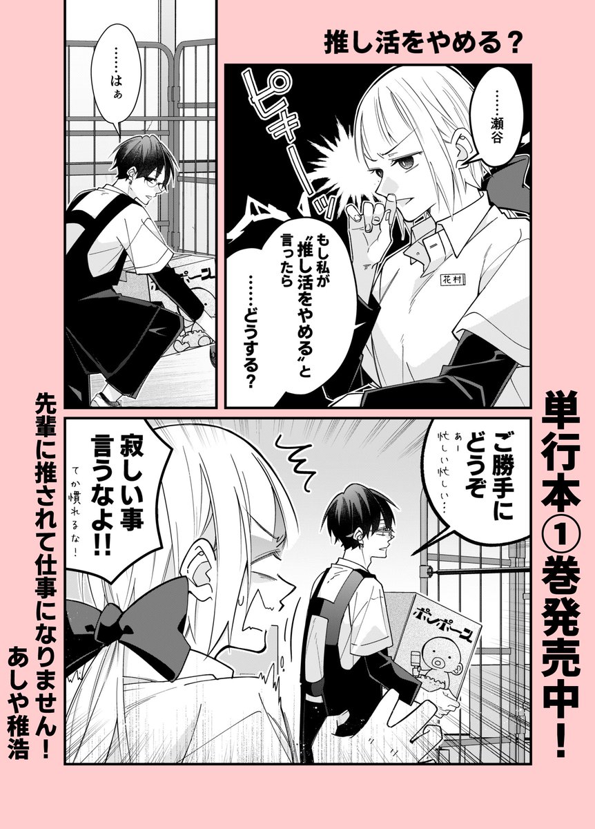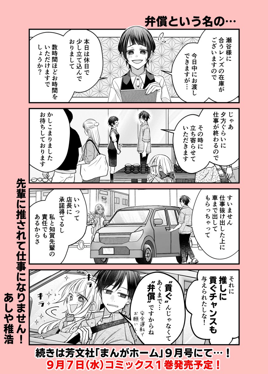『先輩に推されて仕事になりません!』第①巻が9月7日(水)に発売されます!特典も各書店様で色々と描かせていただきました!お手に取って頂けたら嬉しいです。ワイド4コマなので淡々と読めるかと思いますので書店でお見掛けした際はよろしくお願いします! twitter.com/a04chr/status/…