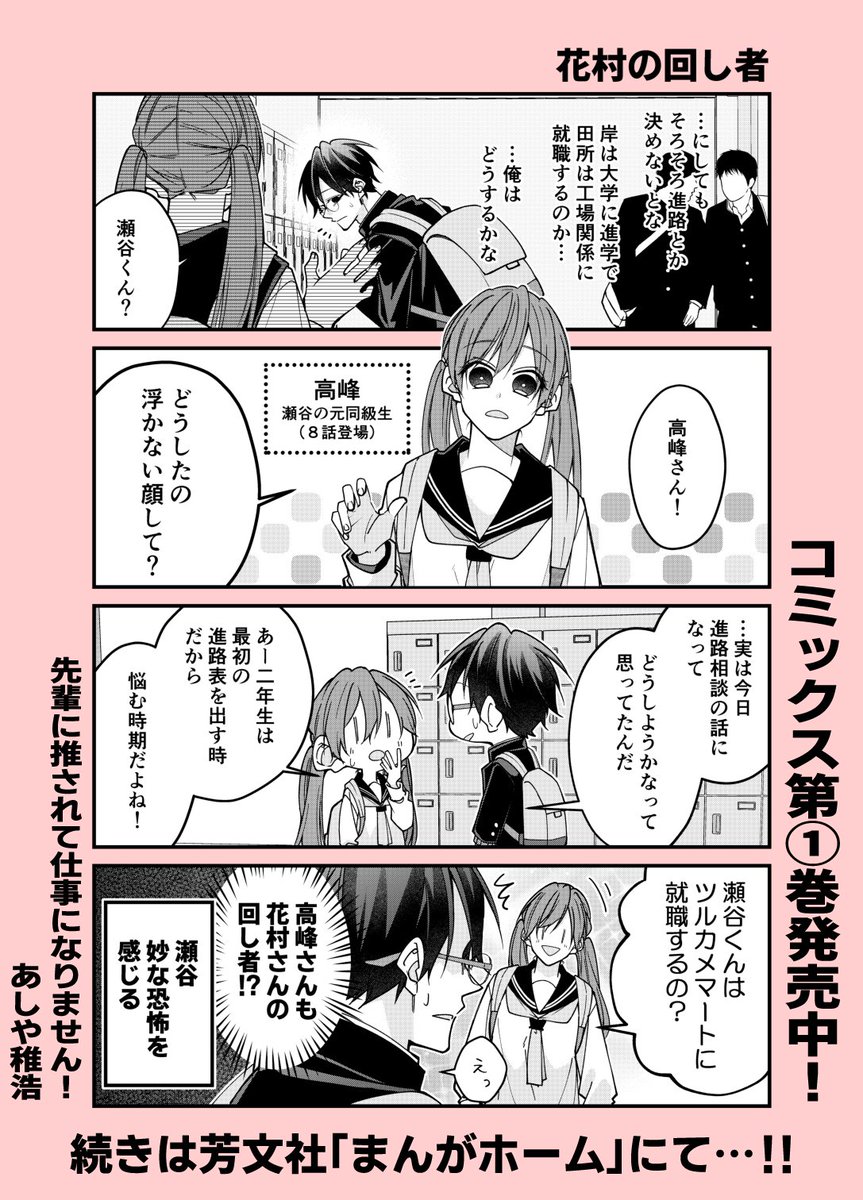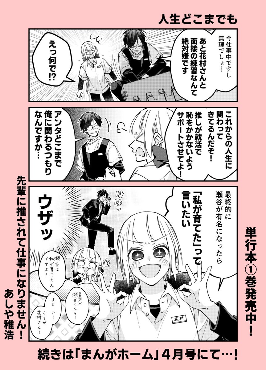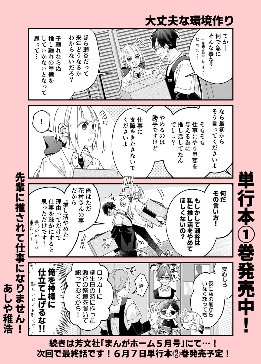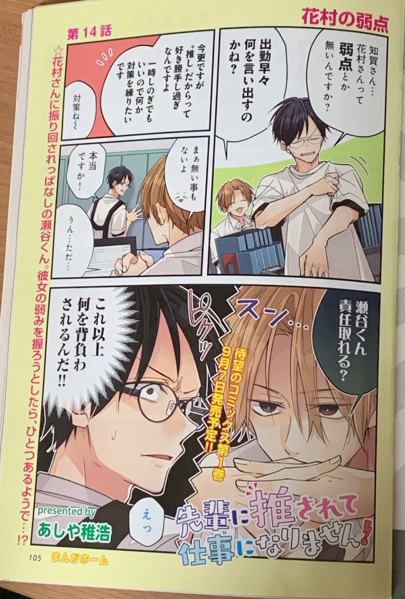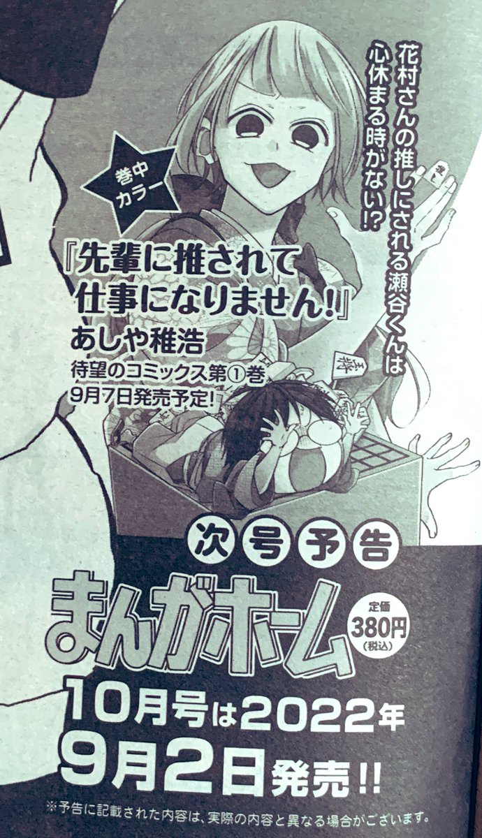 本日発売の芳文社「まんがホーム」10月号にて「先輩に推されて」14話が掲載!今月はコミックス第①巻が発売されます📖発売日は9月7日(水)予定!描き下ろし&特典も色々描かせていただきました。来週、特典情報などお知らせ致します!よろしくお願いします🙇♀️ twitter.com/a04chr/status/…