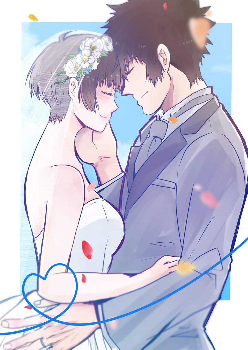 2019年発行の狡朱結婚アンソロジーで使用していただいたイラストの加筆修正版です🌸 #狡朱ジューンブライド企画2023