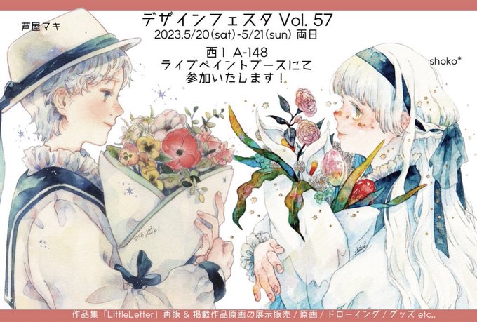 デザフェスvol.57お品書きです💐 ▷西1 A-148 ▷ 5/20.21(両日) ▷ NeOn ライブペイントブースにて、shoko*(@shoko_xxx )さんと合同参加です! 合同作品集やグッズ、水彩原画の展示販売、ライブペイントを行います! 盛りだくさんでお待ちしております☺️ #デザフェス57 #デザフェス57お品書き