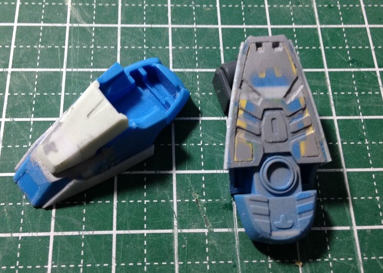 #SDガンダム #ガンプラ #劉備ユニコーンガンダム 髪の毛というかヒトデみたいです。 あんばいがわからないので、サフ吹いてみました。やっぱり真ん中の処理と自然な山型は難しい。ボコボコなのでもう少しヤスリます。真ん中は再度パテ成形したほうがいいですかね。
