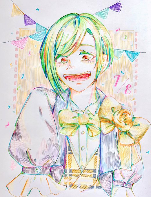 ♡いいねした人の画像欄覗いて素敵絵を私の絵柄で描いてもいいですか 🐝之助さんが描いた可愛い2人を描かせていた貰いました〜!!! そして🐝之助さんお誕生日おめでとうございます🥳👏🎉🍰💗 twitter.com/hati_ozi555/st…