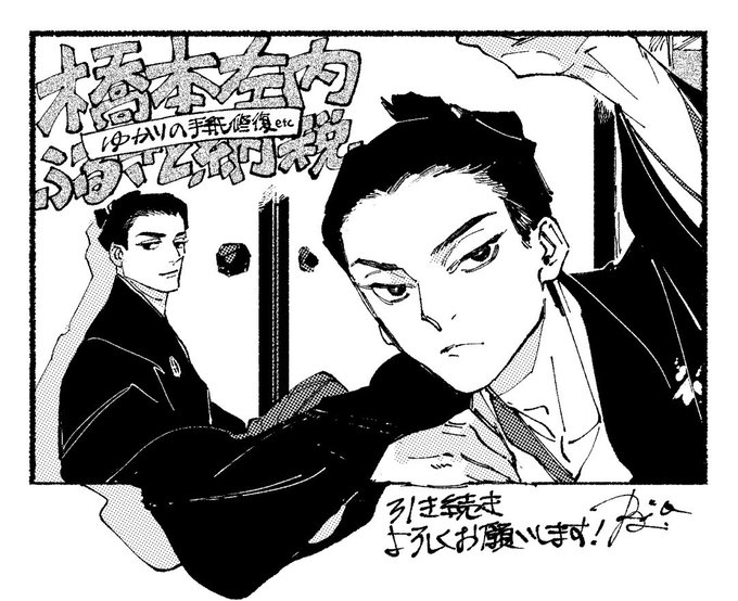 いっぱい拡散してくださってありがとうございます!!〆切9月28日までなんでまたチラホラ宣伝するかもです。 前回は葦尾の好みで丁髷だったんですけど、今回の左内は総髪。他の人物とのバランスとかも考えたり、どっちにするか常に迷ってます。 twitter.com/a4orampe/statu…