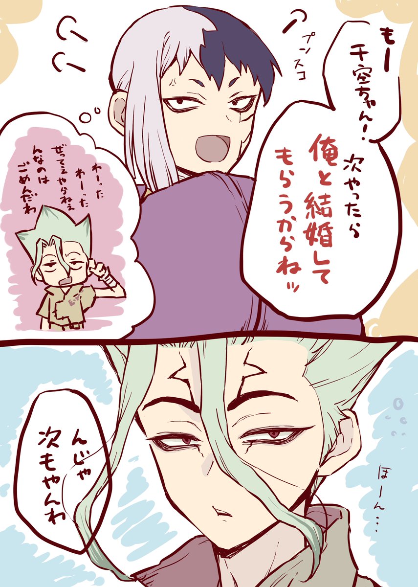 この間のリクエスト千ゲ漫画の続きが出てきて描きました twitter.com/a55449921/stat…